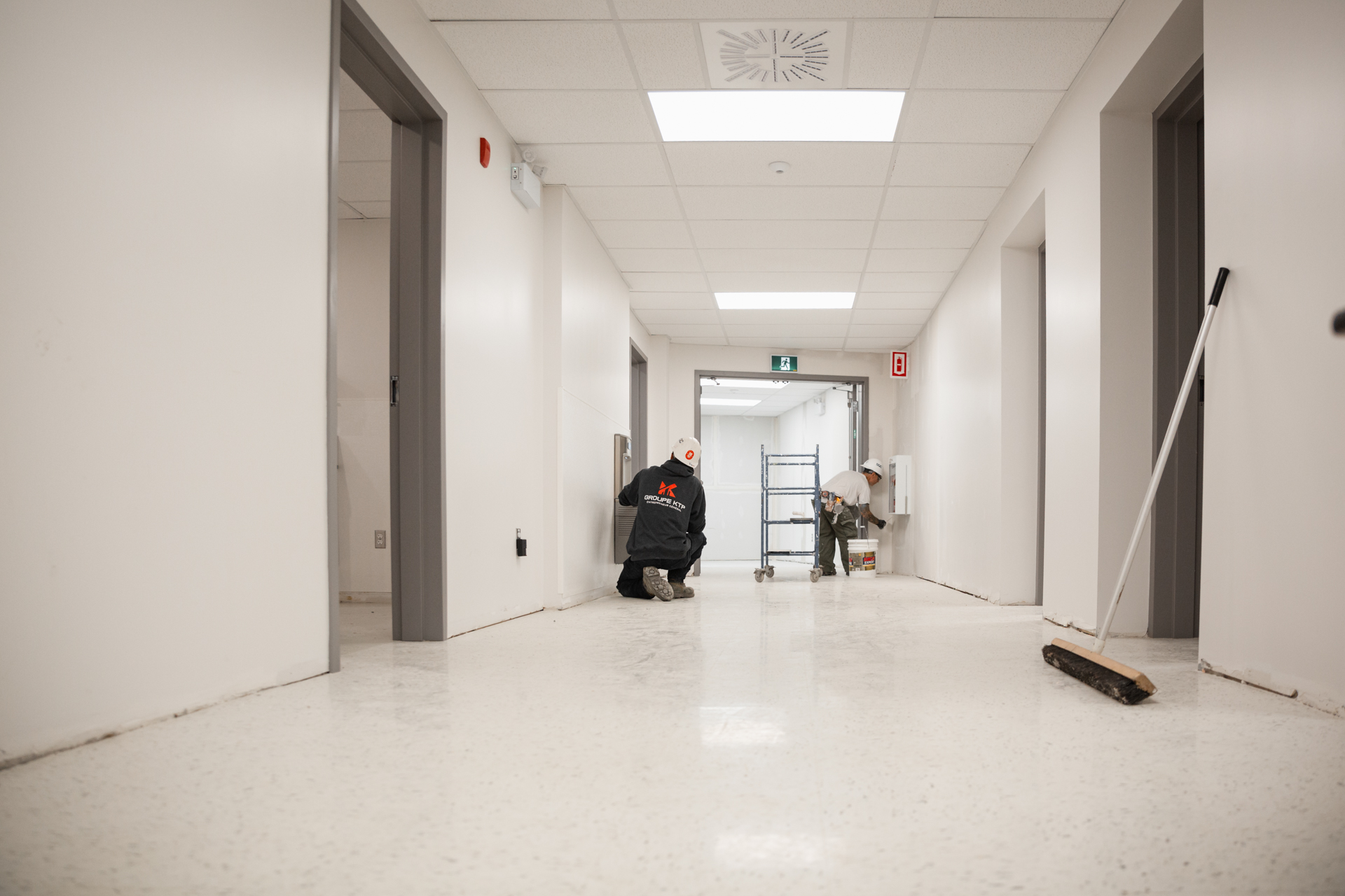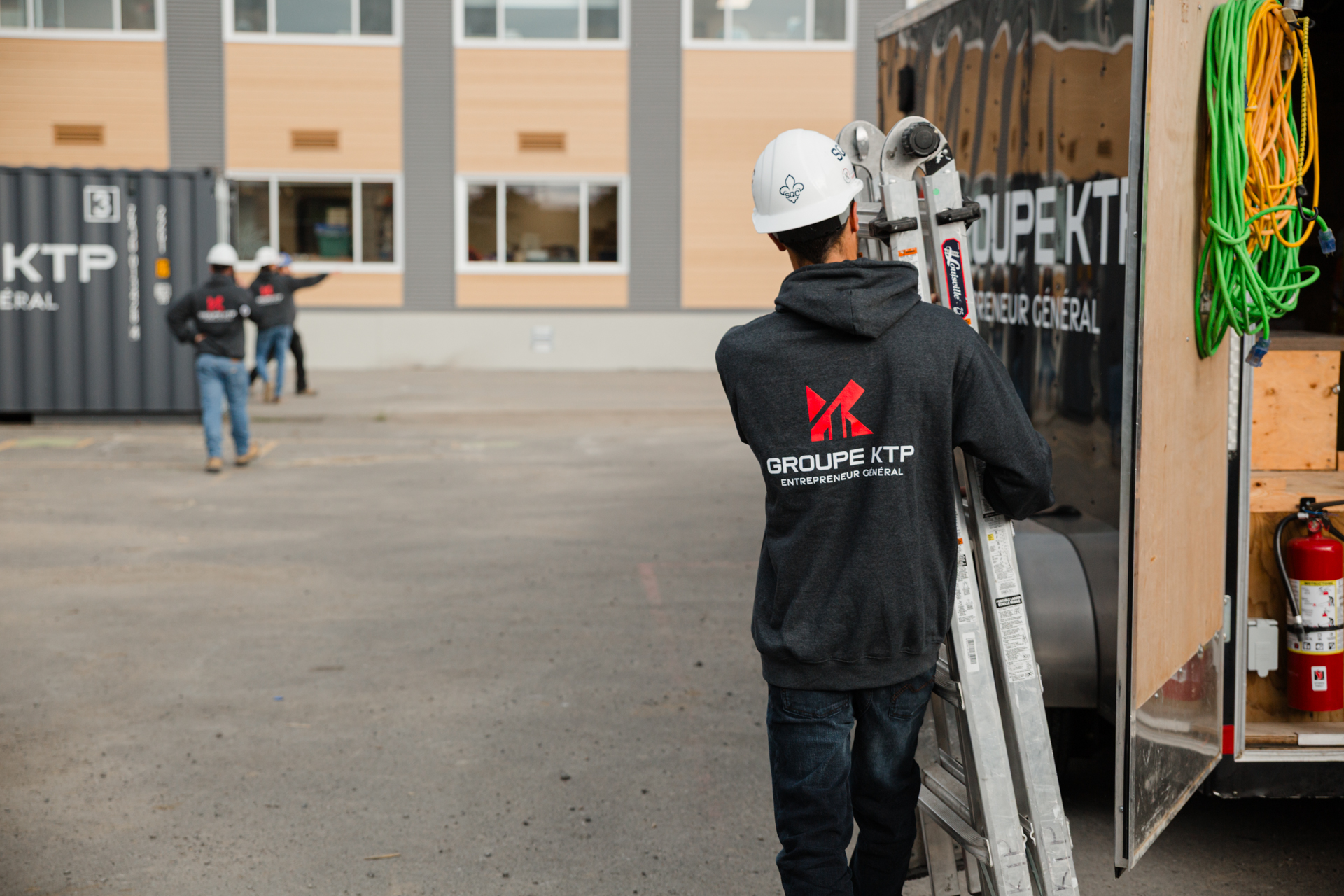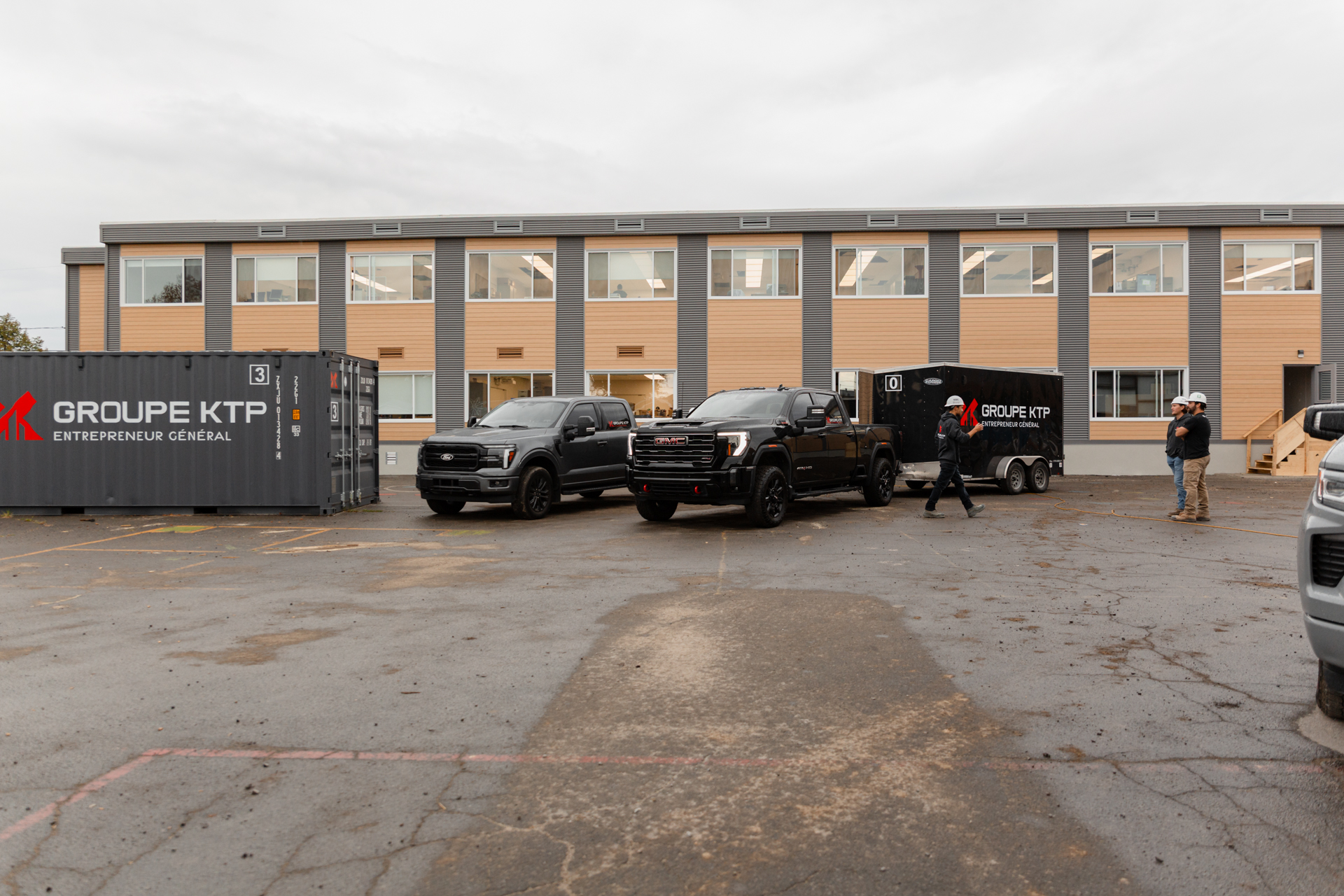 Une fois la structure en place, Groupe KTP s’est occupé des travaux intérieurs, incluant la pose des planchers, l’installation de plinthes de vinyle, ainsi que les travaux de finition. Puis, l’enveloppe extérieure du bâtiment a été complétée avec la pose de fenêtres et de revêtement extérieur, à l’aide de matériaux robustes de qualité commerciale.